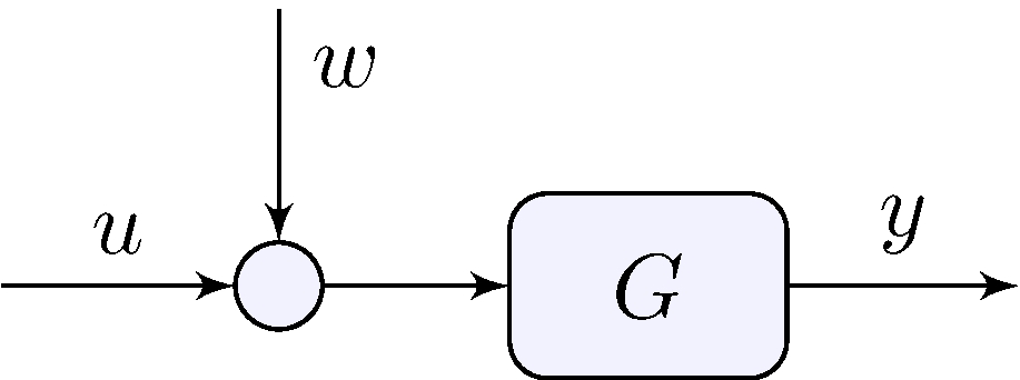 \[\begin{align*} y &= G (u + w) \end{align*}\]