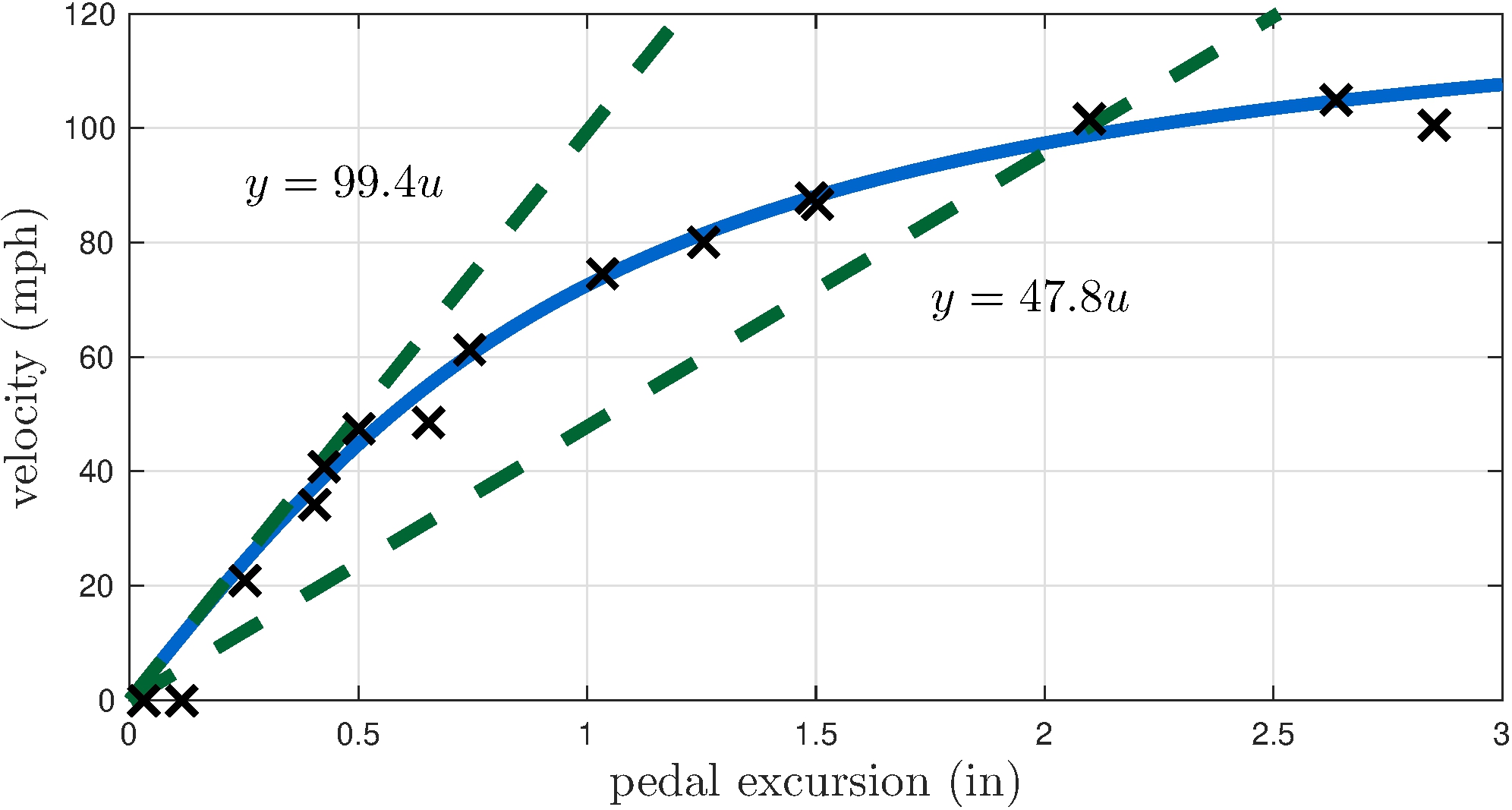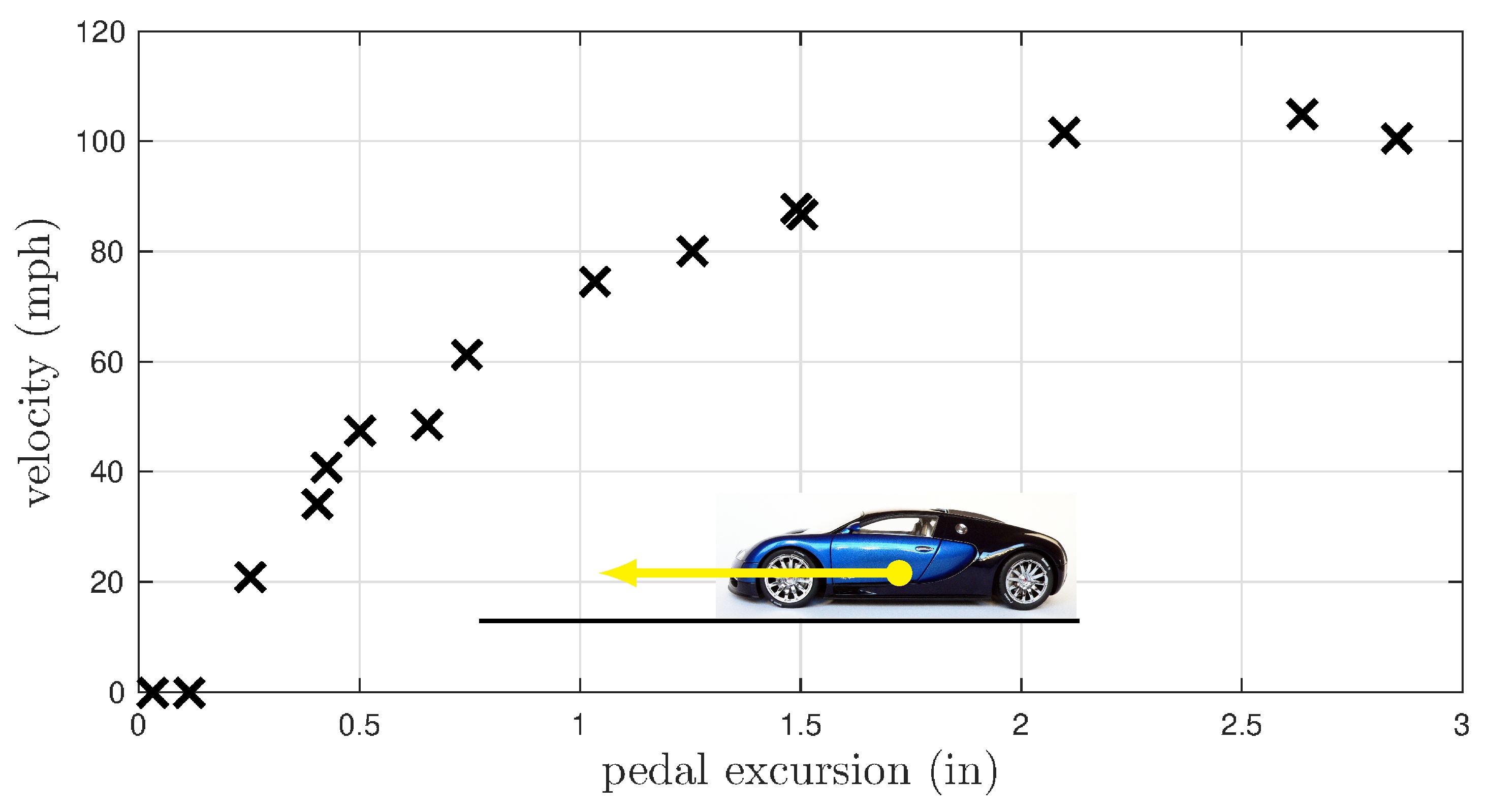 Given a target terminal velocity, \(\bar{y}\), design a system, the controller, that is capable to command the accelerator pedal of a car, the input, \(u\), to produce a terminal velocity, the output, \(y\), equal to the target velocity?