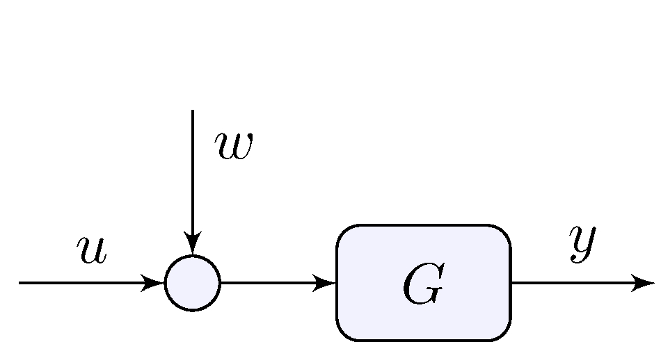\[\begin{align*} \dot{y}(t) + \frac{b}{m} \, y(t) &= \frac{p}{m} \left ( u(t) + w(t) \right ) \end{align*}\]