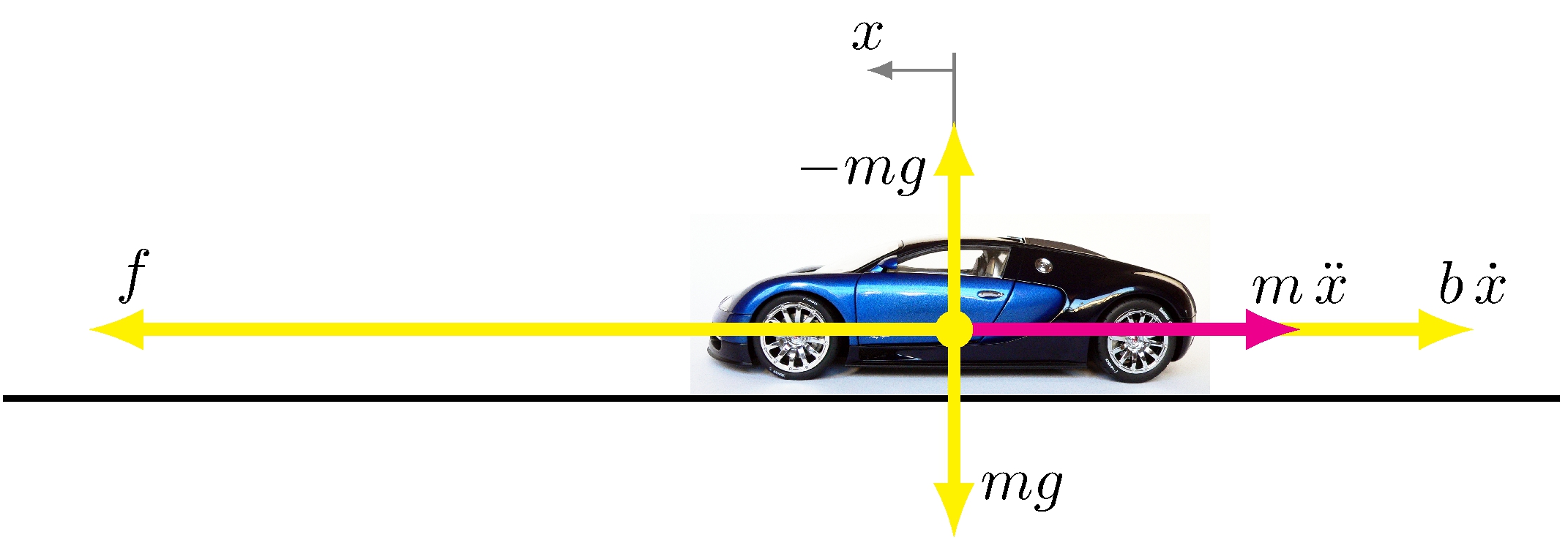 \[\begin{align*} m \, \dot{v}(t) + b \, v(t) = f(t) \end{align*}\]