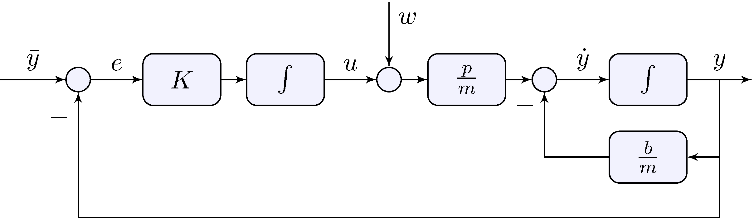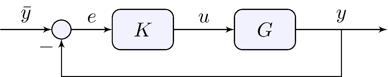 \[\begin{align*} Y(s) &= G(s) \, U(s), & U(s) &= K(s) \, E(s), & E(s) &= \bar{Y}(s) - Y(s) \end{align*}\]