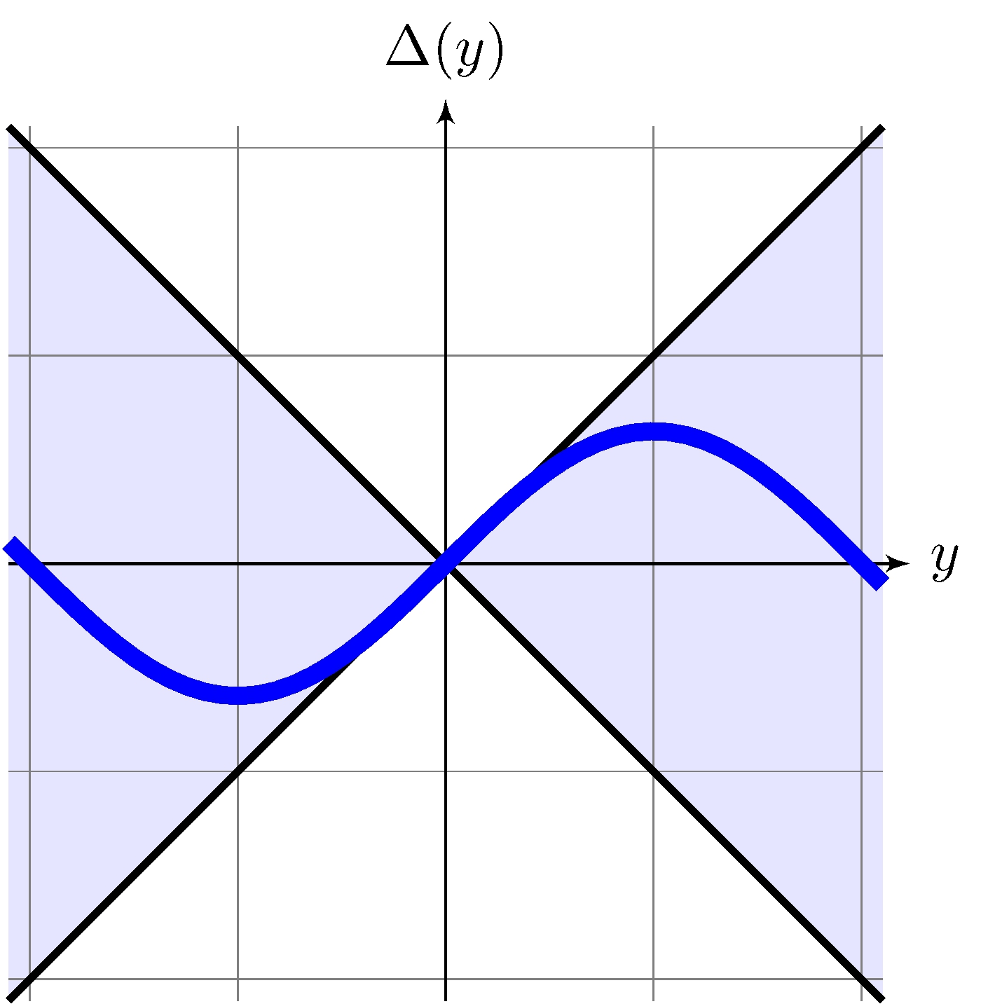 Nonlinearity as an “uncertainty” \[\begin{align*} \Delta(y) &= \sin(y) \end{align*}\]