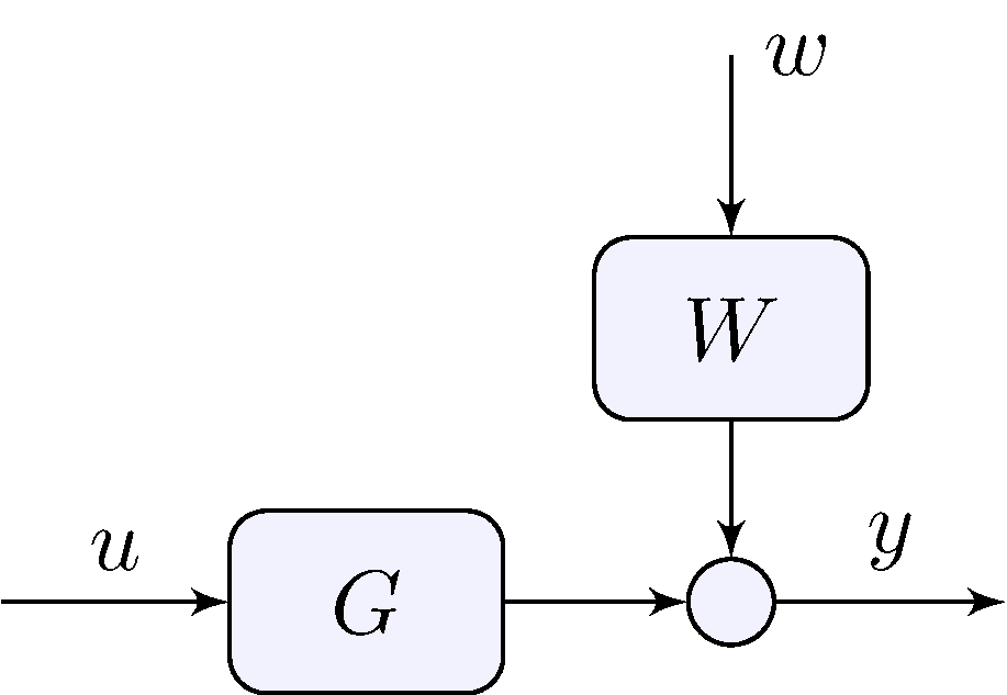 \[\begin{align*} \|y\|_2 &\leq \|G\|_\infty \left ( \|w\|_2 + \| v \|_2 \right ) + M \| x_0 \|_2, & \| G \|_\infty &= \sup_{\omega \in \mathbb{R}} | G(j \omega) | \end{align*}\]
