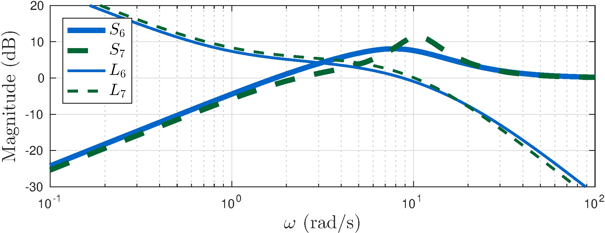 \[\begin{align*} |L(j\omega)| &\approx 0 & &\implies & |S(j \omega)| &\approx 1 \end{align*}\] e.g. \(L\) is strictly proper \[\begin{align*} \lim_{|s| \rightarrow \infty} |L(s)| &= 0 & &\implies & \lim_{|s| \rightarrow \infty} |S(s)| &= 1 \end{align*}\]